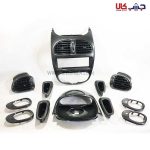 این ست شامل ۱۲ قطعه از اجزای داخل کابین اعم از پنل ضبط ،قاب ساعت، دریچه هوای چپ و راست، قاب دستگیره درب جلو و عقب و کاسه ای درب جلو و عقب می شود.